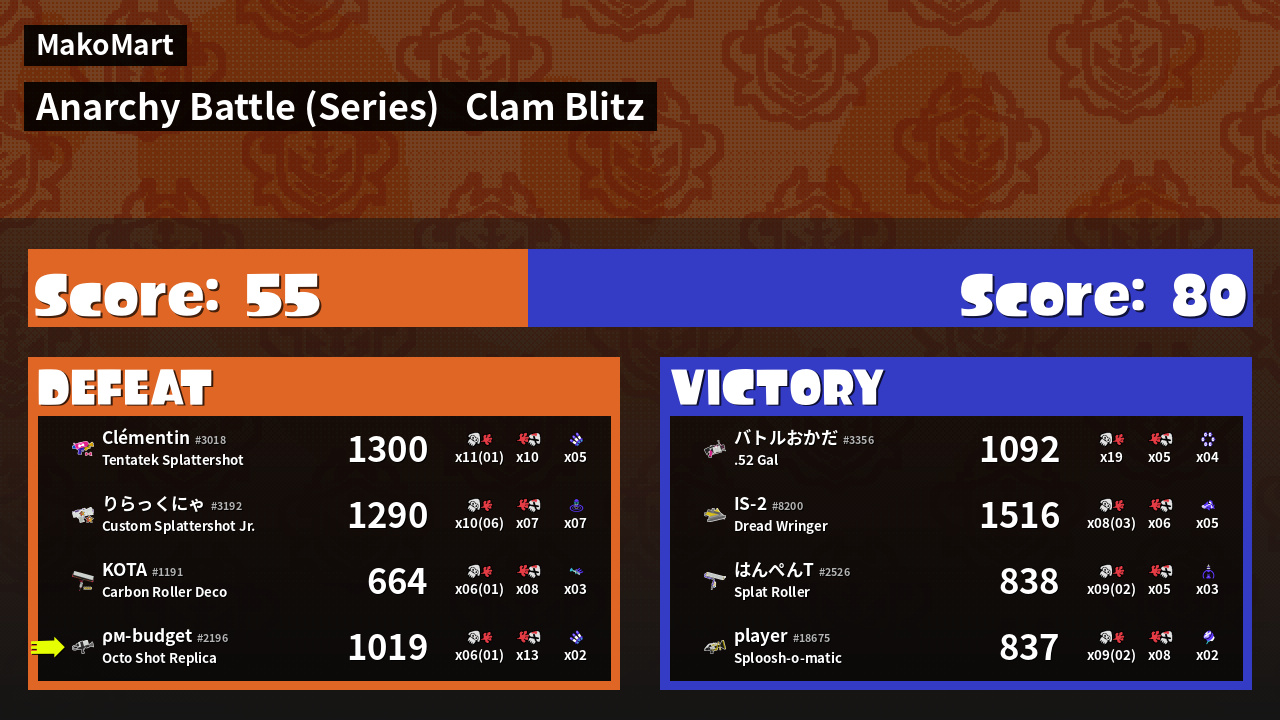 | Mode | Clam Blitz - Anarchy Battle (Series) | ||