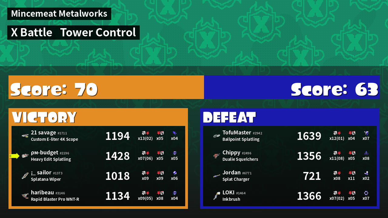 | Weapon | Heavy Edit Splatling ( Curling Bomb / Tacticooler) | ||