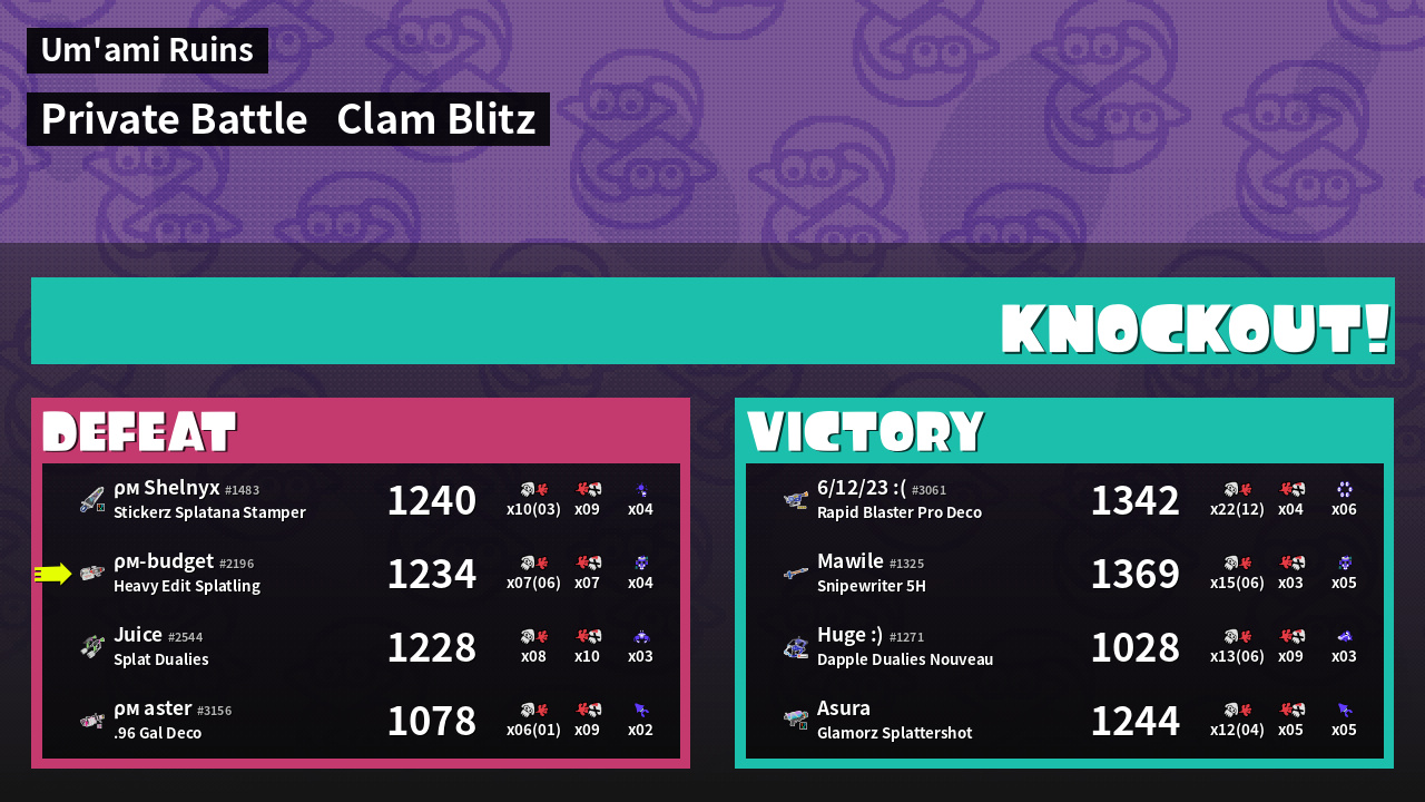 | Mode | Clam Blitz - Private Battle | ||