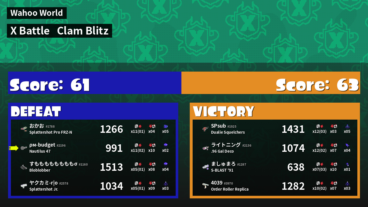 | Medals | #1 Overall Splatter #1 Splat Assister #1 Clam Stopper | ||