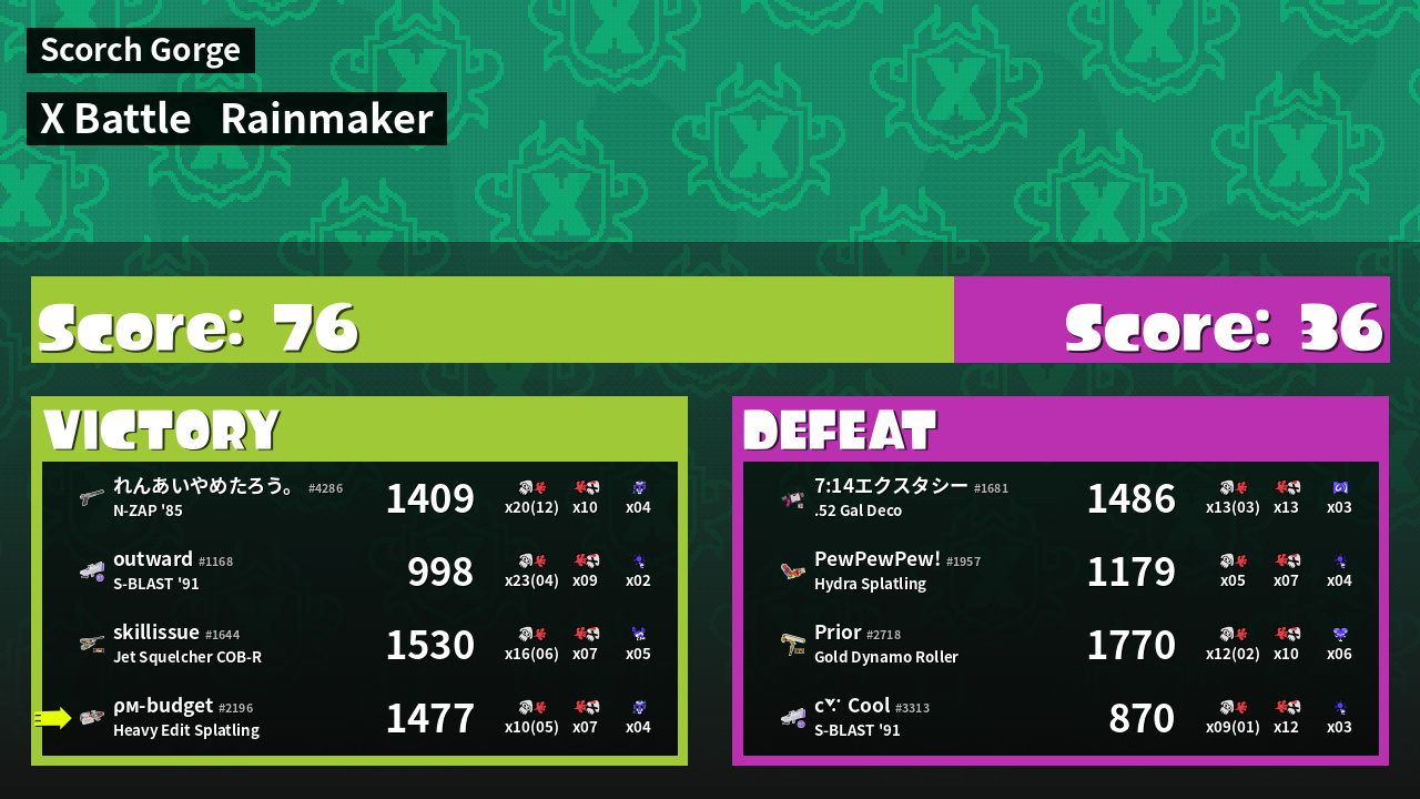 | Weapon | Heavy Edit Splatling ( Curling Bomb / Tacticooler) | ||