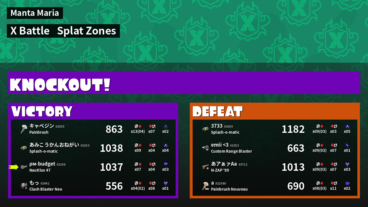 | Mode | Splat Zones - X Battle | ||