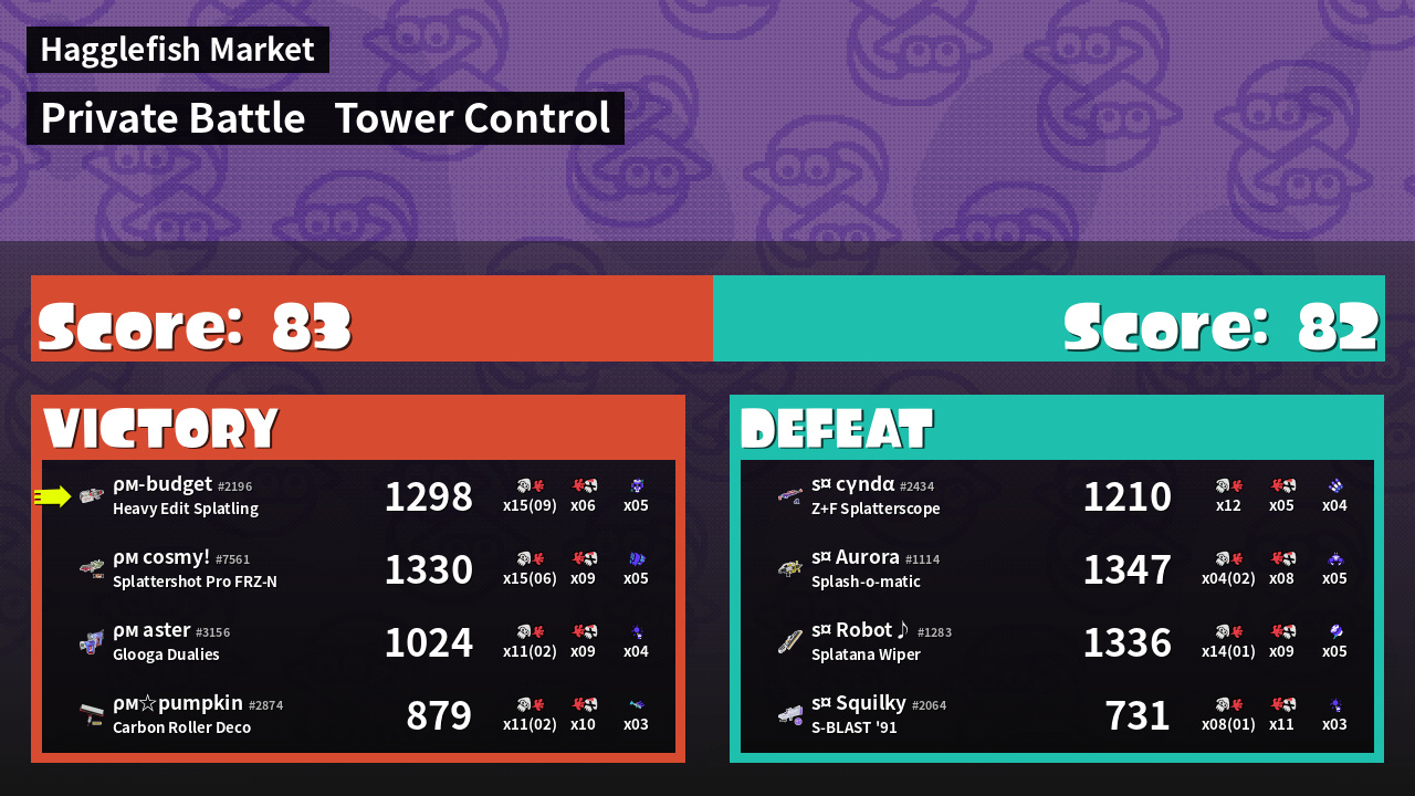 | Medals | #1 Overall Splatter #1 Score Booster Record-Score Setter | ||
