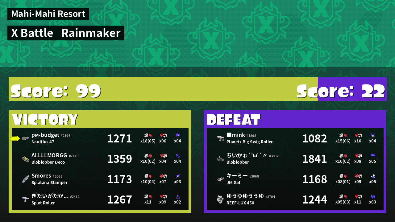 | Weapon | Nautilus 47 ( Point Sensor / Ink Storm) | ||