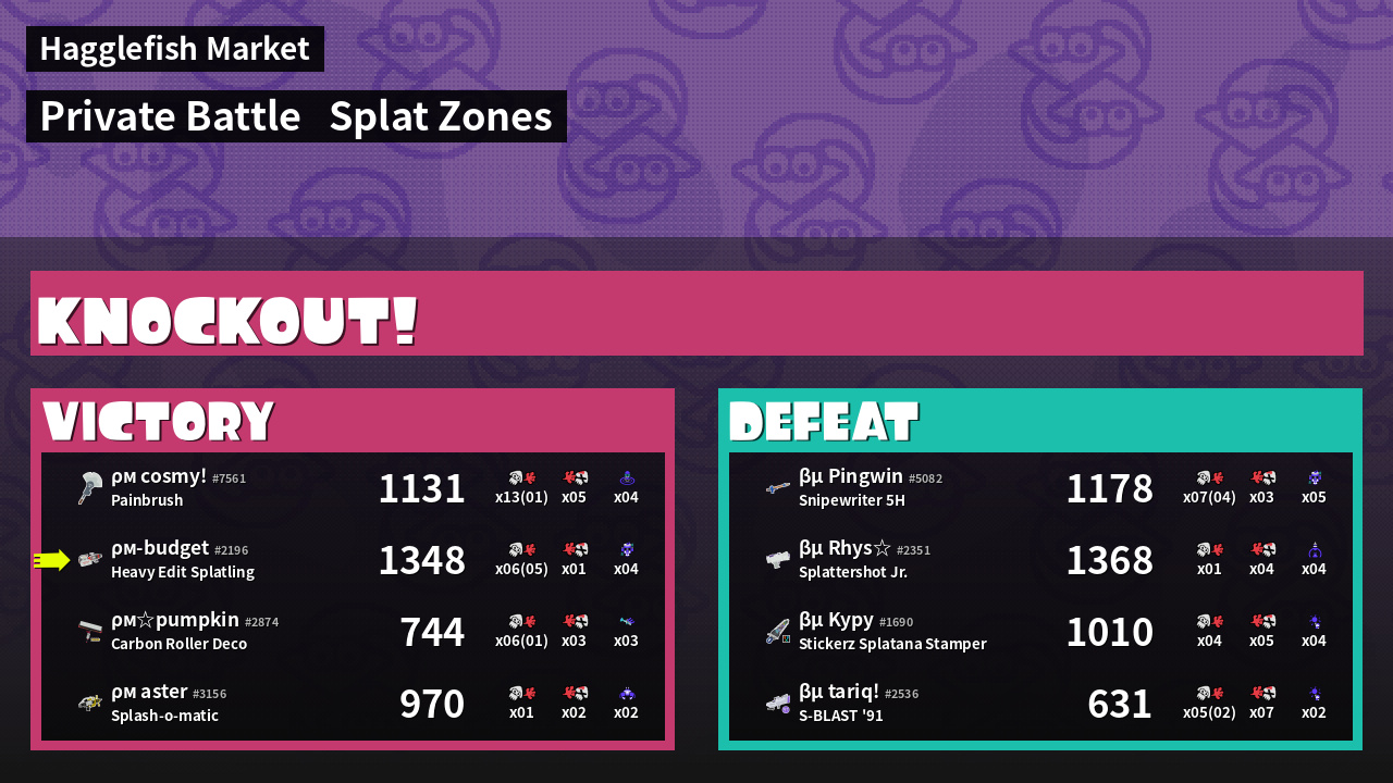 | Medals | #1 Splat Zone Inker #1 Turf Inker #1 Popular Target | ||