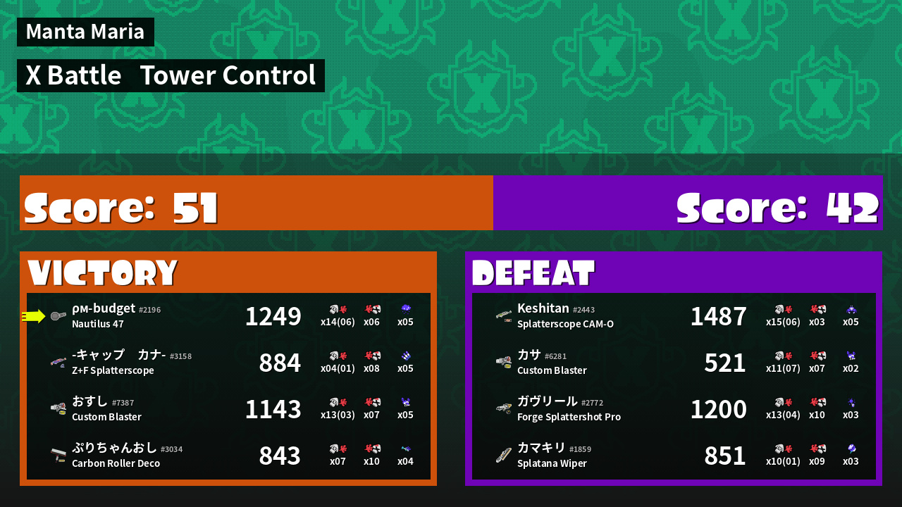 | Mode | Tower Control - X Battle | ||