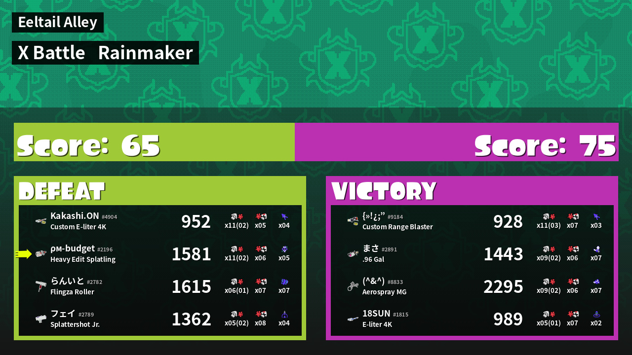 | Medals | #1 Overall Splatter #1 Score Booster Record-Score Setter | ||
