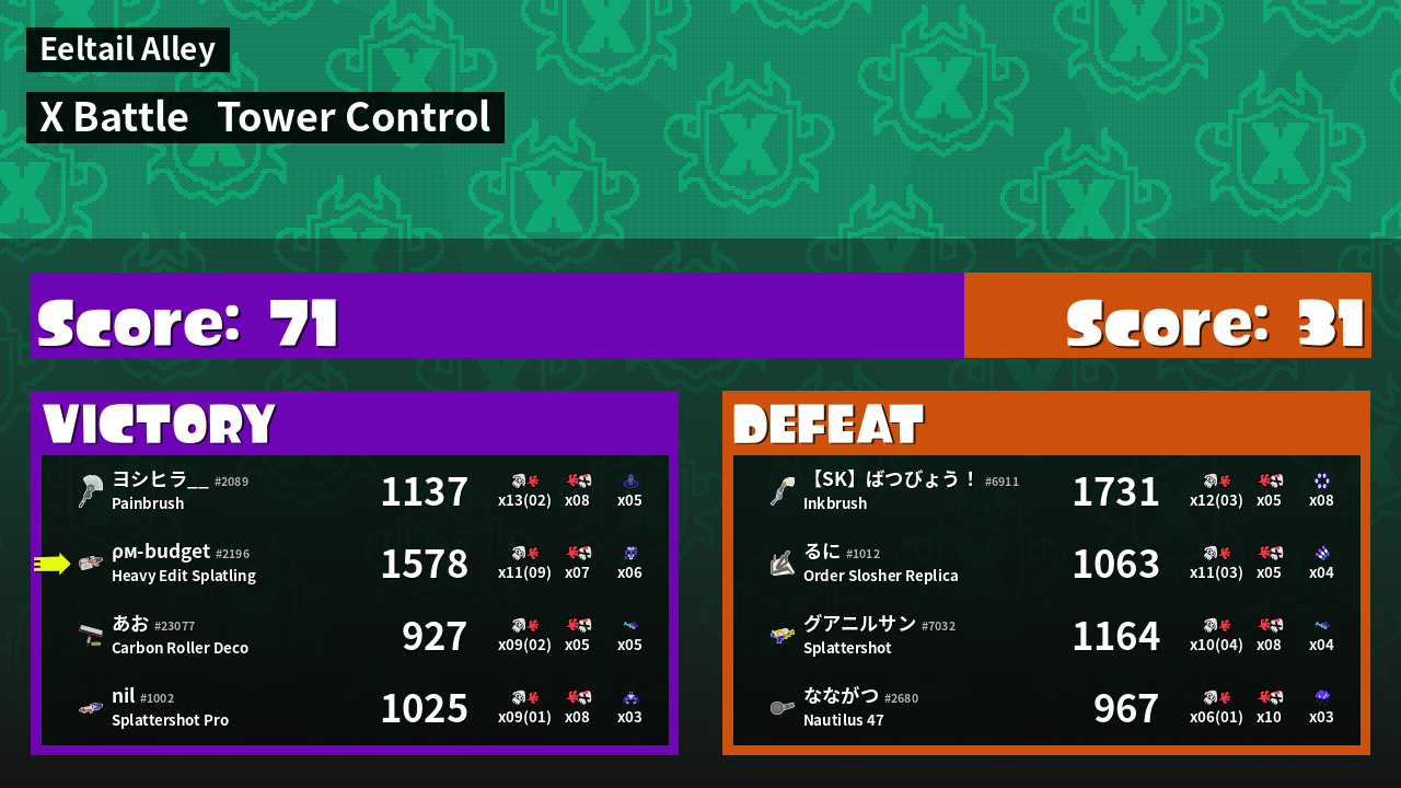 | Medals | #1 Turf Inker #1 Splat Assister #1 Checkpoint Breaker | ||