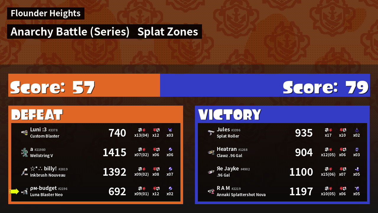 | Mode | Splat Zones - Anarchy Battle (Series) | ||