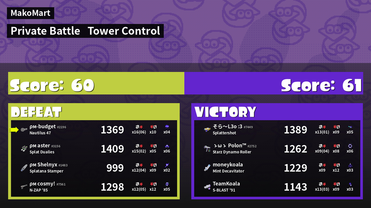| Medals | #1 Overall Splatter #1 Score Booster #1 Super Jump Spot | ||