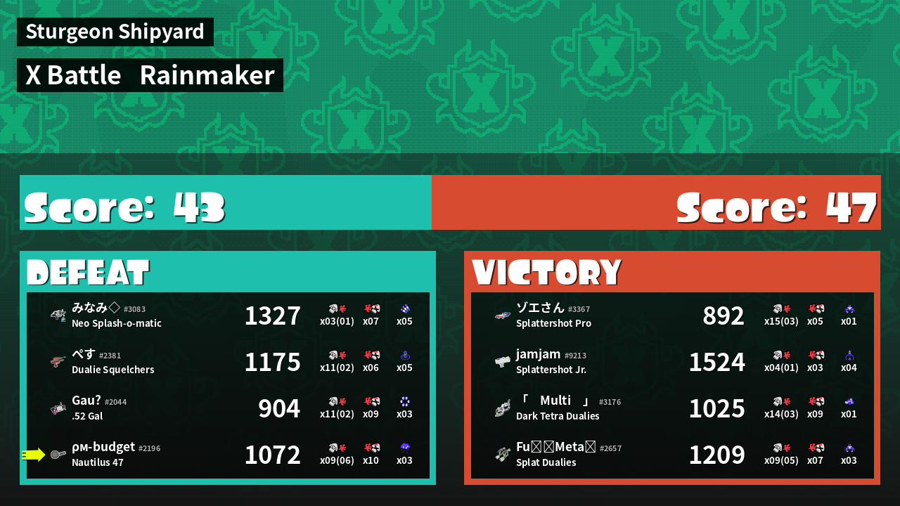 | Weapon | Nautilus 47 ( Point Sensor / Ink Storm) | ||