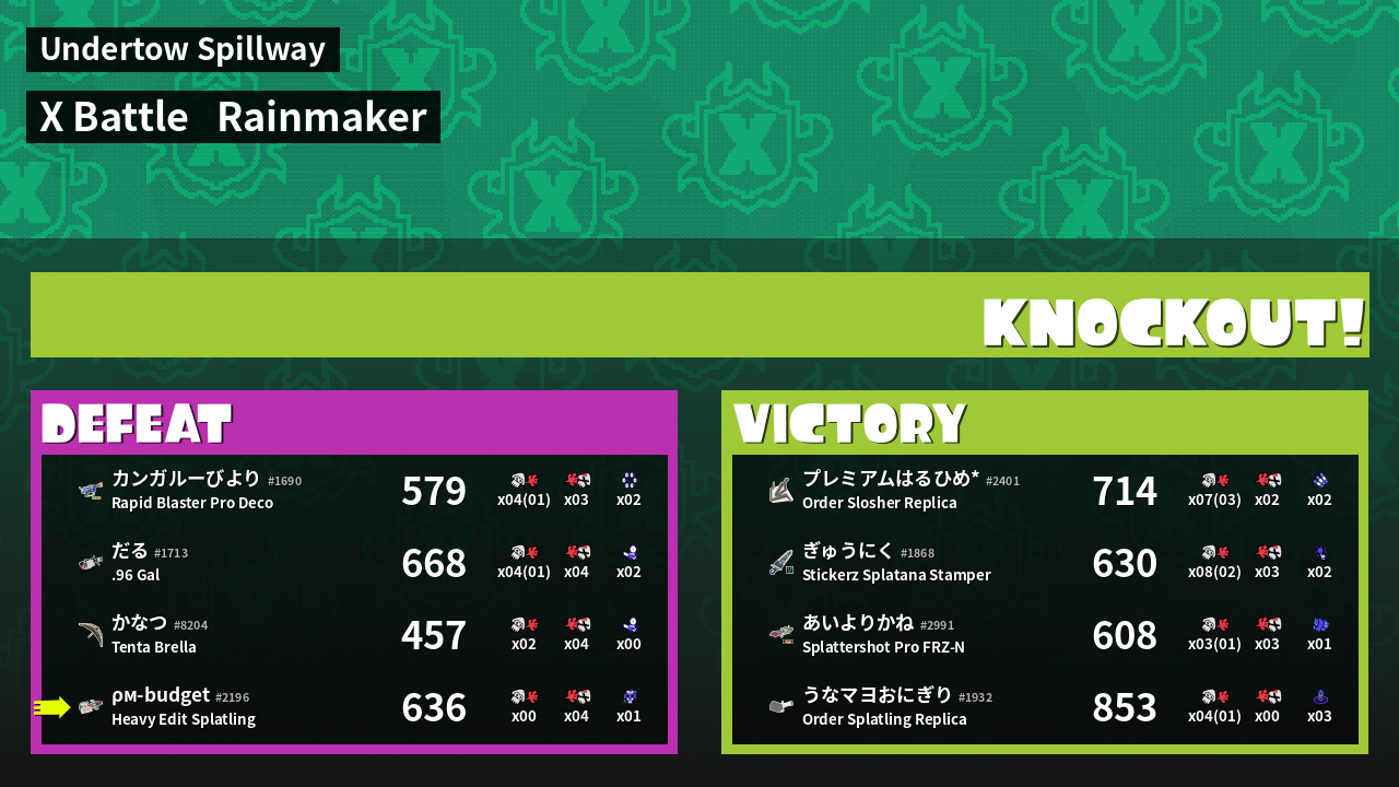 | Weapon | Heavy Edit Splatling ( Curling Bomb / Tacticooler) | ||