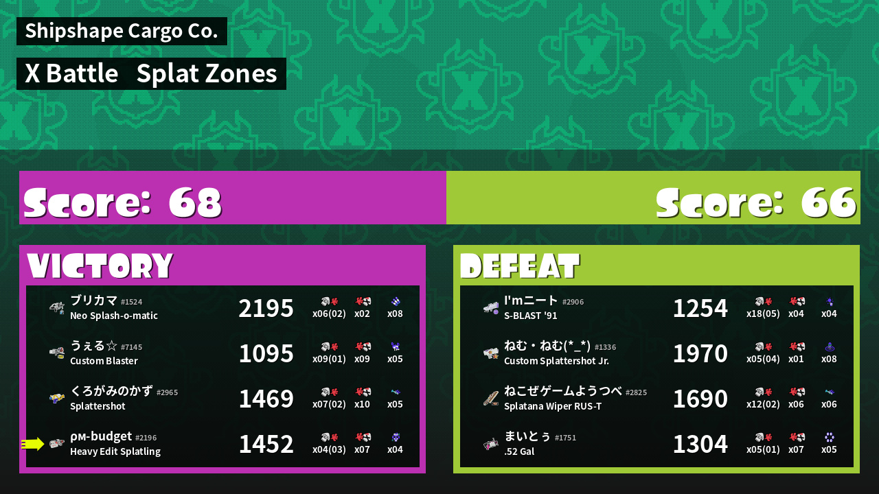 | Weapon | Heavy Edit Splatling ( Curling Bomb / Tacticooler) | ||