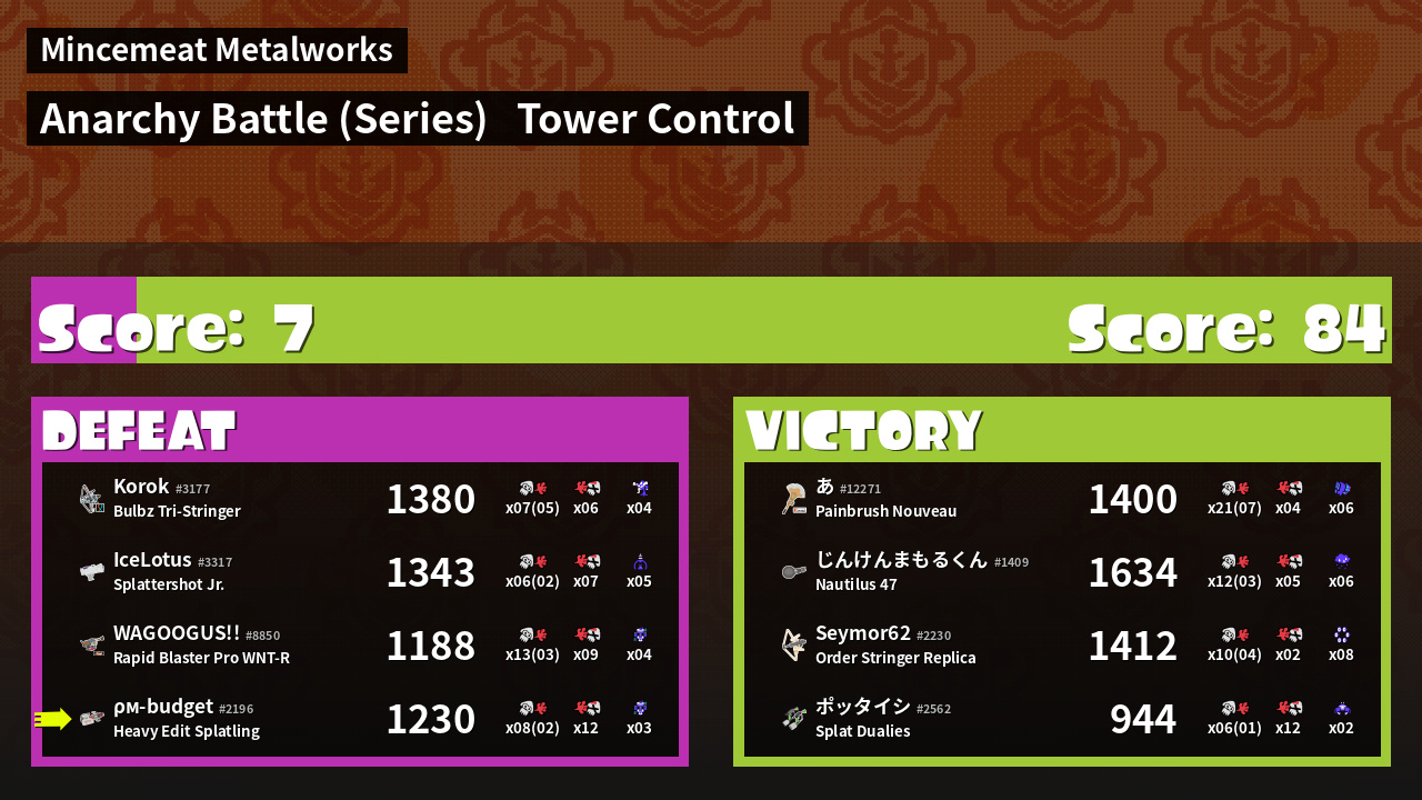 | Mode | Tower Control - Anarchy Battle (Series) | ||