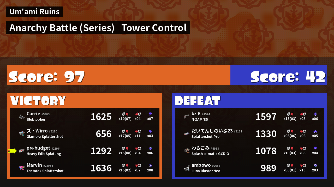 | Medals | #1 Popular Target #1 Splat Assister #1 Tower Stopper | ||