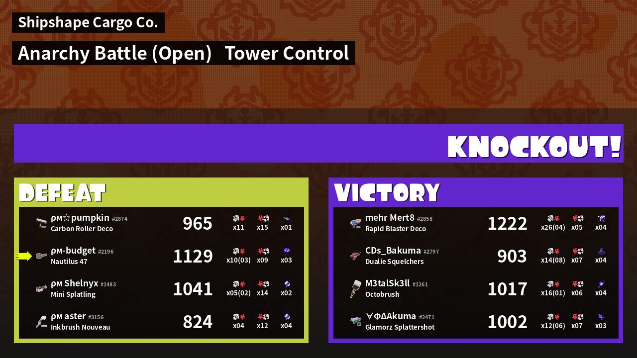 | Mode | Tower Control - Anarchy Battle (Open) | ||