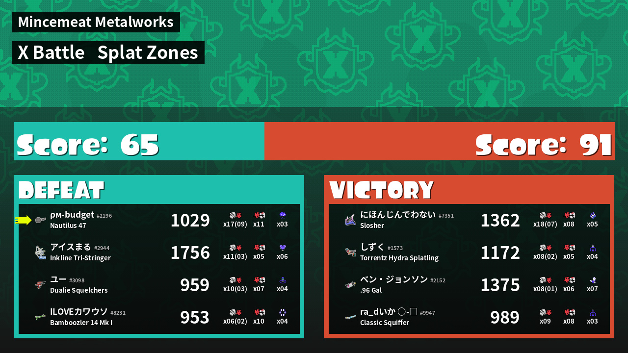 | Mode | Splat Zones - X Battle | ||