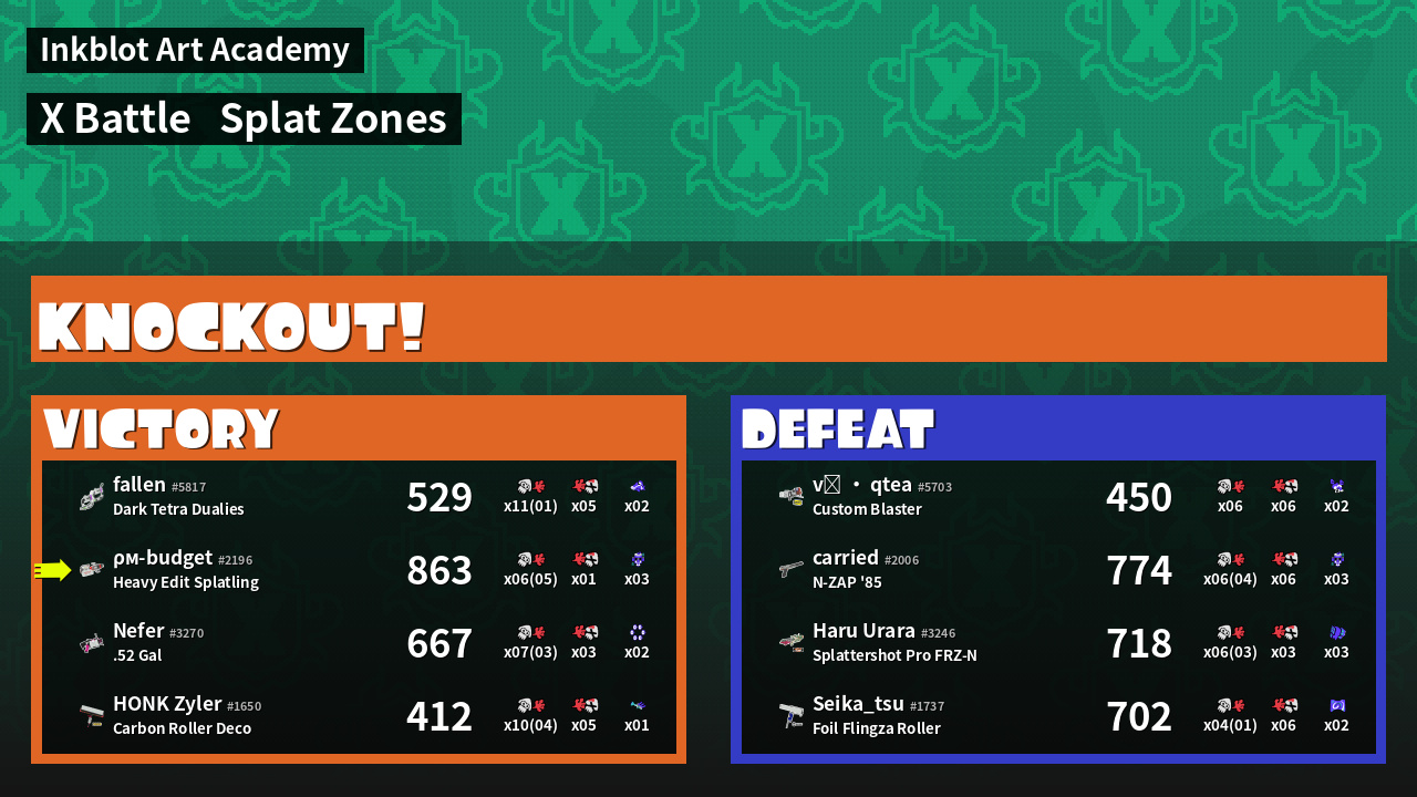 | Medals | #1 Splat Zone Inker #1 Turf Inker #1 Super Jump Spot | ||