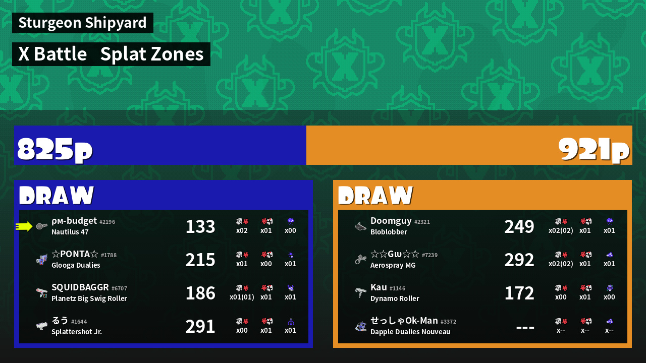 | Mode | Splat Zones - X Battle | ||