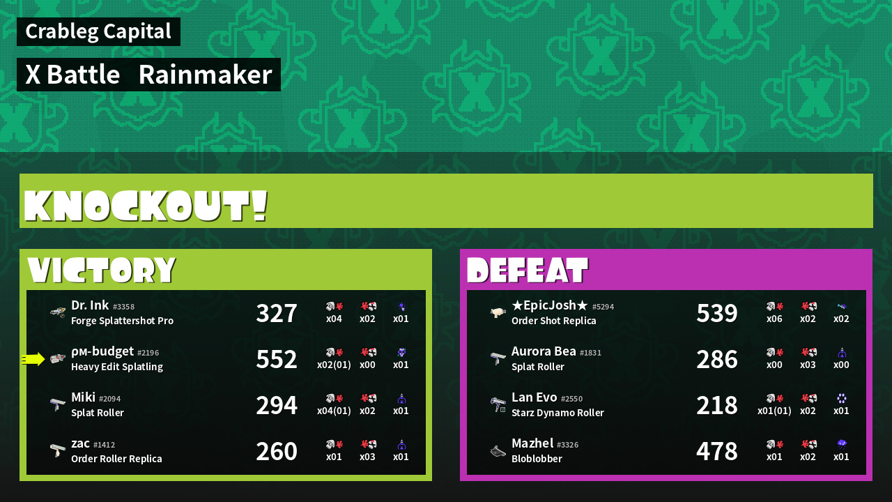 | Weapon | Heavy Edit Splatling ( Curling Bomb / Tacticooler) | ||