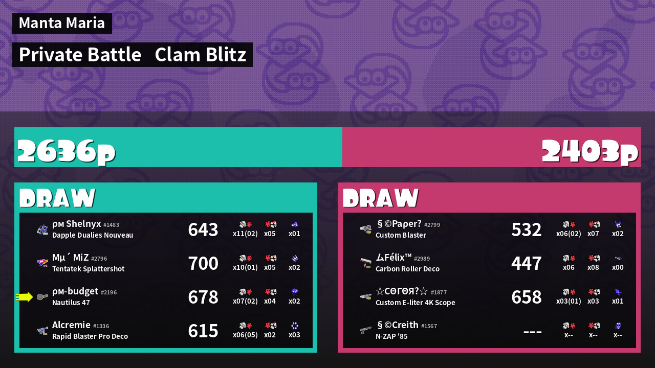 | Weapon | Nautilus 47 ( Point Sensor / Ink Storm) | ||