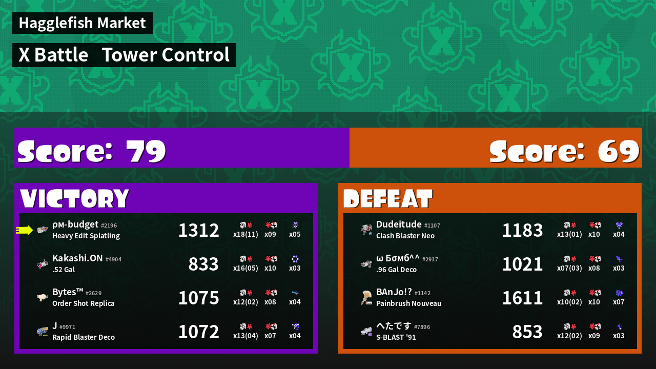 | Mode | Tower Control - X Battle | ||