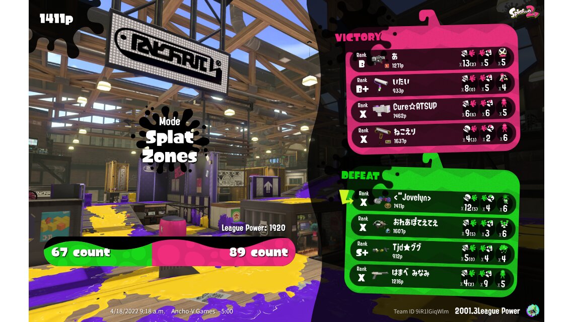 | Mode | Splat Zones - League Battle (Twin) | |||||||||||||||||||||||||||||||||||||
