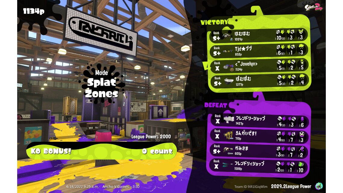 | Mode | Splat Zones - League Battle (Twin) | |||||||||||||||||||||||||||||||||||||