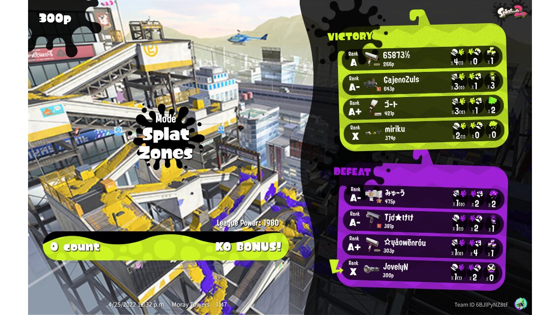 | Mode | Splat Zones - League Battle (Quad) | ||||||||||||||||||||||||||||||||||