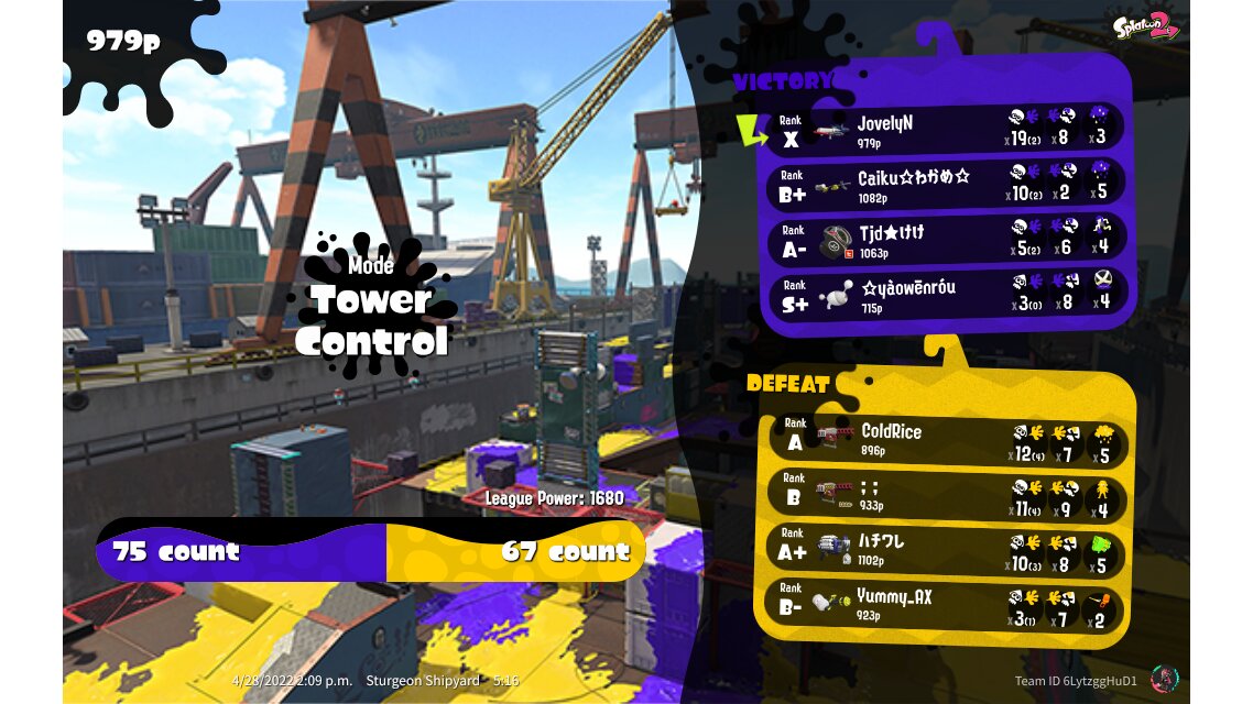 | Mode | Tower Control - League Battle (Quad) | ||||||||||||||||||||||||||||
