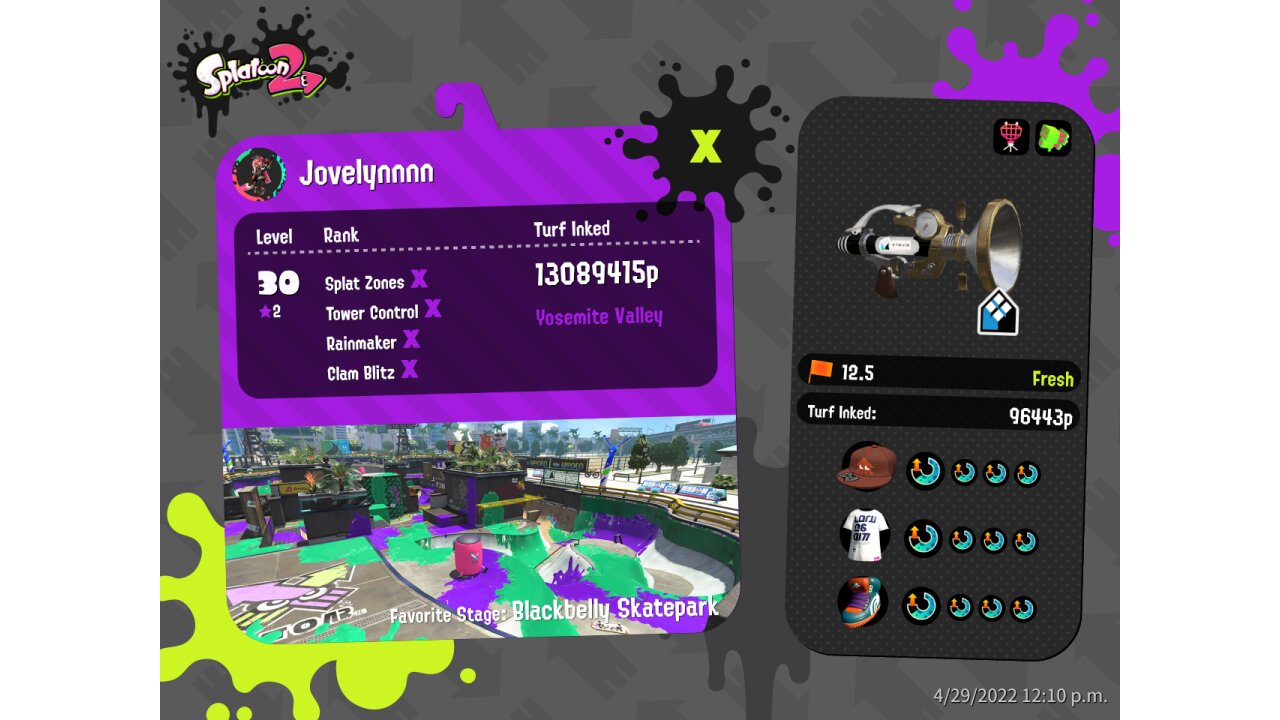 | SplatNet Battle # | 15,965 | ||||||||||||||||||||||