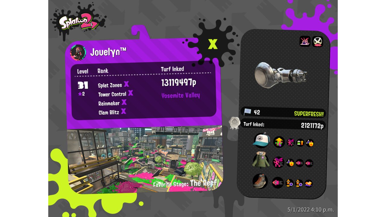 | SplatNet Battle # | 15,996 | ||||||||||||||||||||||||||||||||||||||||