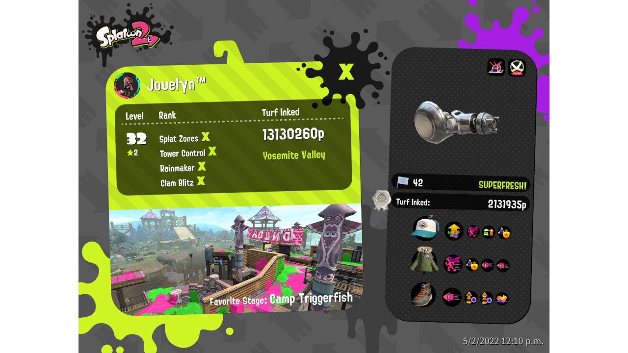 | SplatNet Battle # | 16,010 | ||||||||||||||||||||||||||||||||||||||||