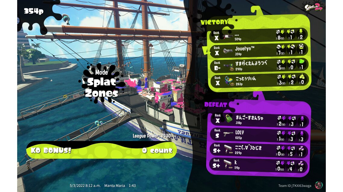 | Mode | Splat Zones - League Battle (Twin) | ||||||||||||||||||||||||||||||||||||||||