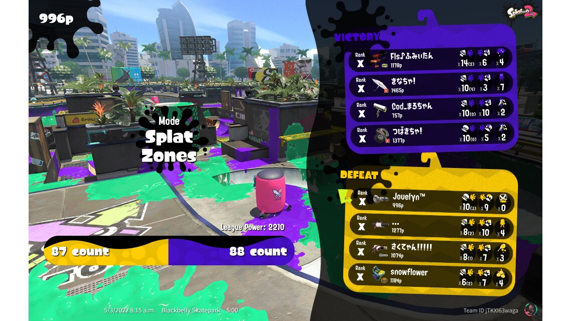 | Mode | Splat Zones - League Battle (Twin) | ||||||||||||||||||||||||||||||||||||||||