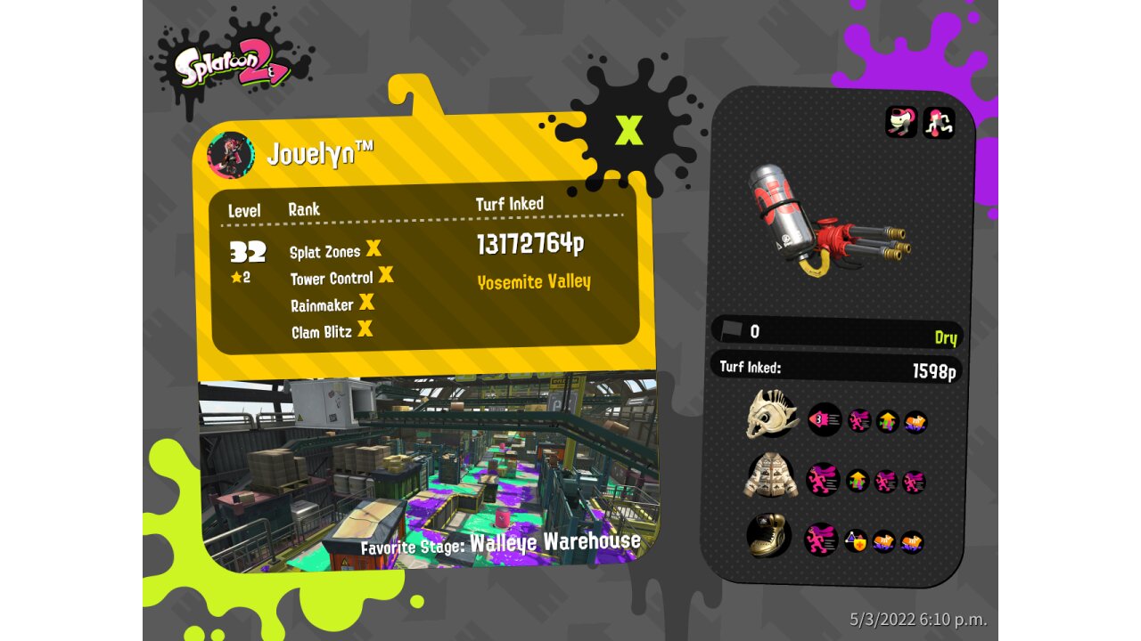 | SplatNet Battle # | 16,049 | ||||||||||||||||||||||||||||||||||