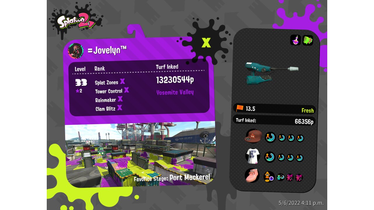 | SplatNet Battle # | 16,110 | |||||||||||||||||||||||||||||||