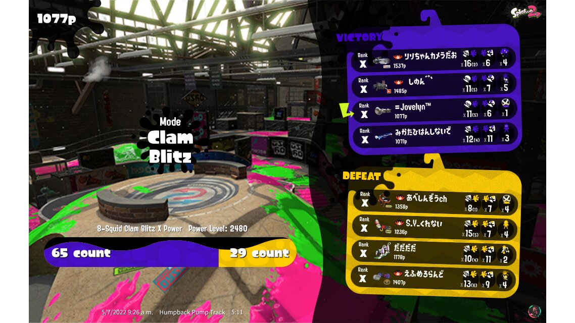| Mode | Clam Blitz - Ranked Battle | ||||||||||||||||||||||||||||||||||||||||