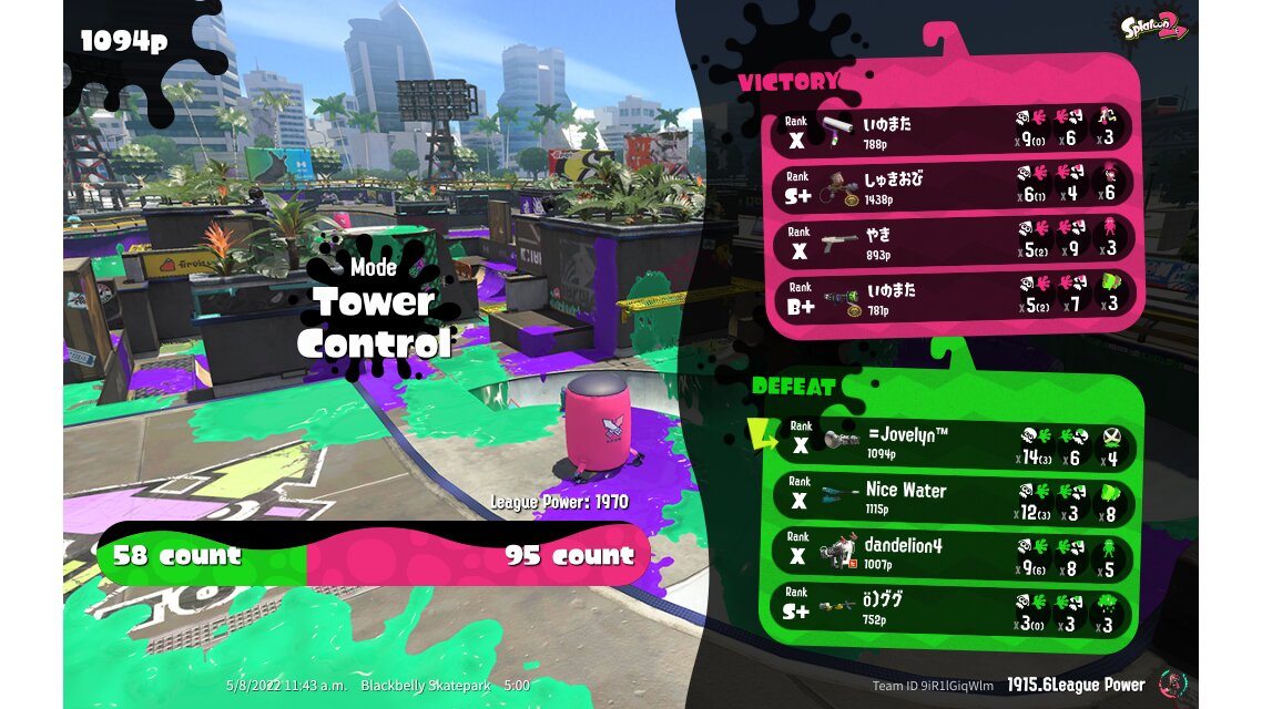 | Mode | Tower Control - League Battle (Twin) | ||||||||||||||||||||||||||||||||||||||||