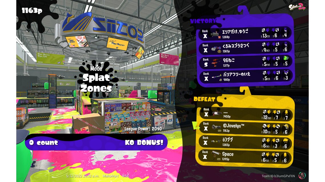 | Mode | Splat Zones - League Battle (Quad) | ||||||||||||||||||||||||||||||||||||||||