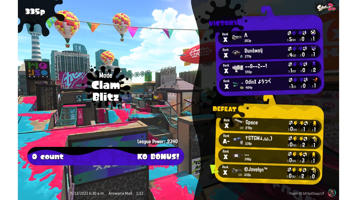 | Mode | Clam Blitz - League Battle (Quad) | ||||||||||||||||||||||||||||||||||||||||