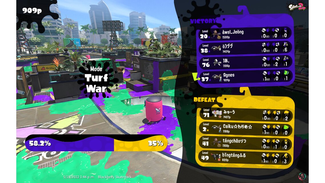 | Mode | Turf War - Private Battle | ||||||||||||||||||||||||||||||||||