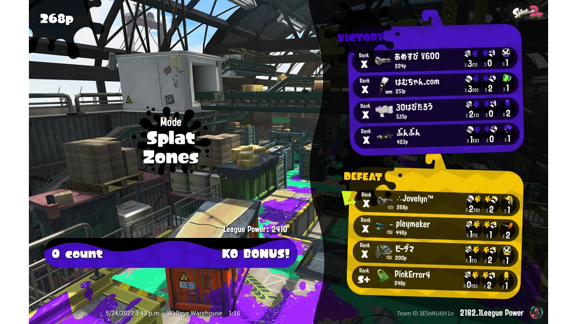 | Mode | Splat Zones - League Battle (Quad) | ||||||||||||||||||||||||||||||||||||||||