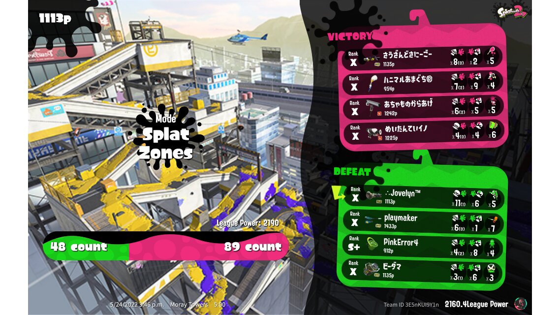 | Mode | Splat Zones - League Battle (Quad) | ||||||||||||||||||||||||||||||||||||||||