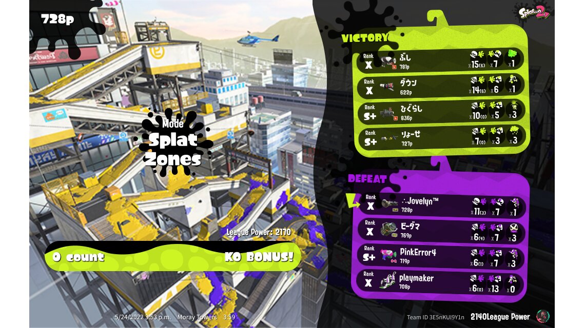 | Mode | Splat Zones - League Battle (Quad) | ||||||||||||||||||||||||||||||||||||||||