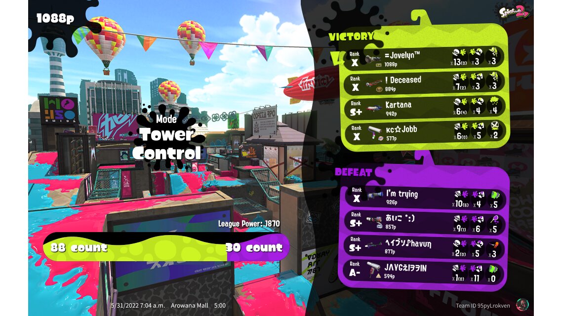 | Mode | Tower Control - League Battle (Twin) | |||||||||||||||||||||||||||||||||||||||||||