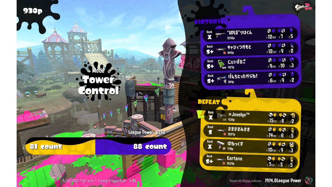 | Mode | Tower Control - League Battle (Twin) | |||||||||||||||||||||||||||||||||||||||||||