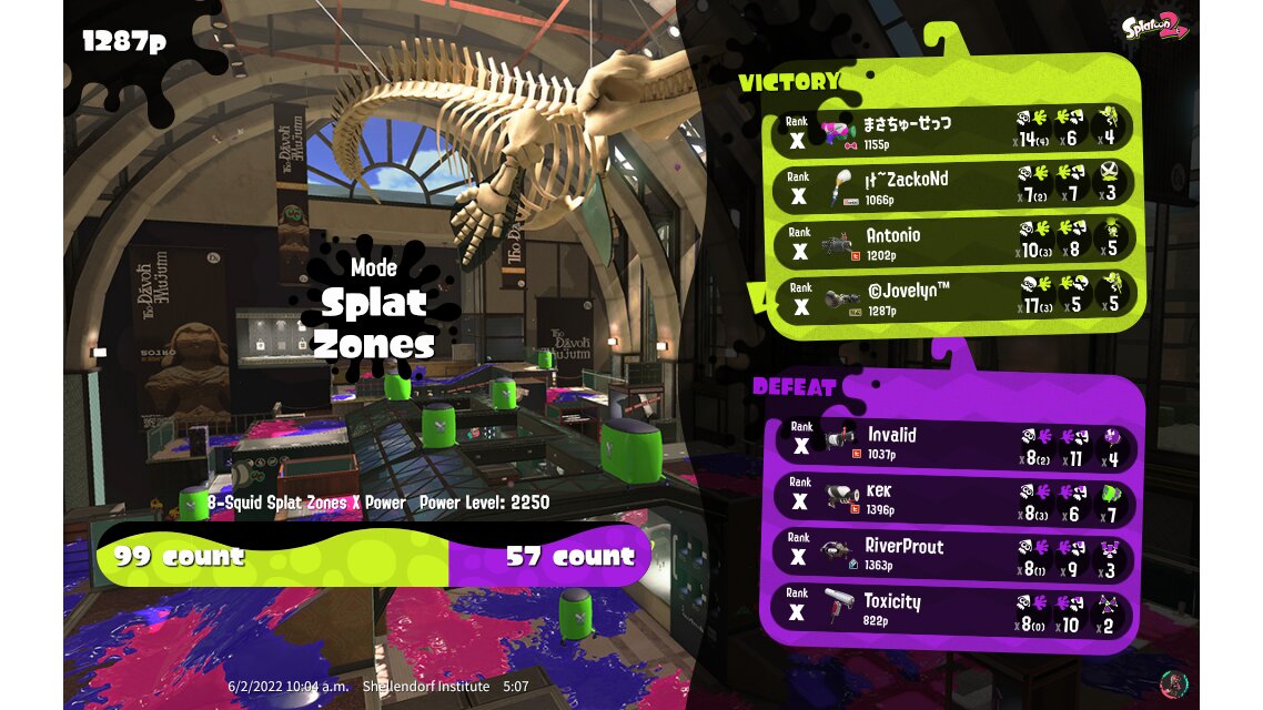 | Mode | Splat Zones - Ranked Battle | ||||||||||||||||||||||||||||||||||||||||