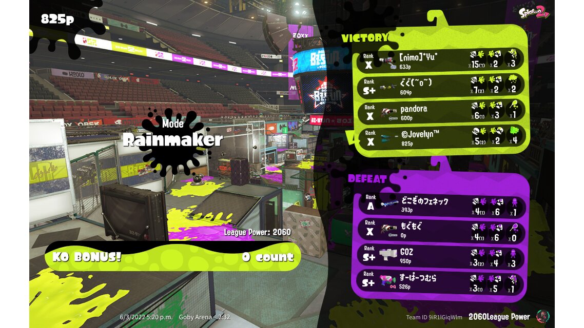 | Mode | Rainmaker - League Battle (Twin) | ||||||||||||||||||||||