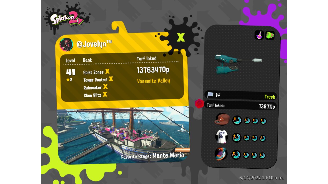 | SplatNet Battle # | 16,698 | ||||||||||||||||||||||